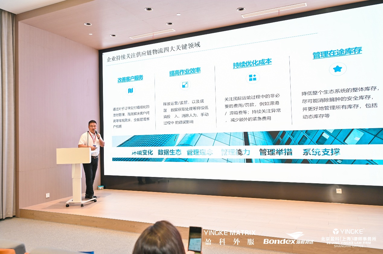 紧接着,盈科外服集团总裁叶小培分享企业出海“五步走”以及盈科外服“一站式”出海服务体系方法论,国际海关规则专家带来了《世界海关规则解析及企业出海海关合规思考》的精彩演讲,深入剖析世界海关规则的最新动态及企业合规出海的关键路径,为企业规避国际贸易风险提供了指导。